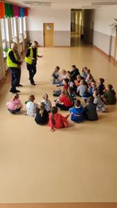 19 września w Szkole Podstawowej nr 2 w Łapach odbyło się spotkanie uczniów klas pierwszych poświęcone tematyce bezpiecznej drogi do szkoły i do domu.