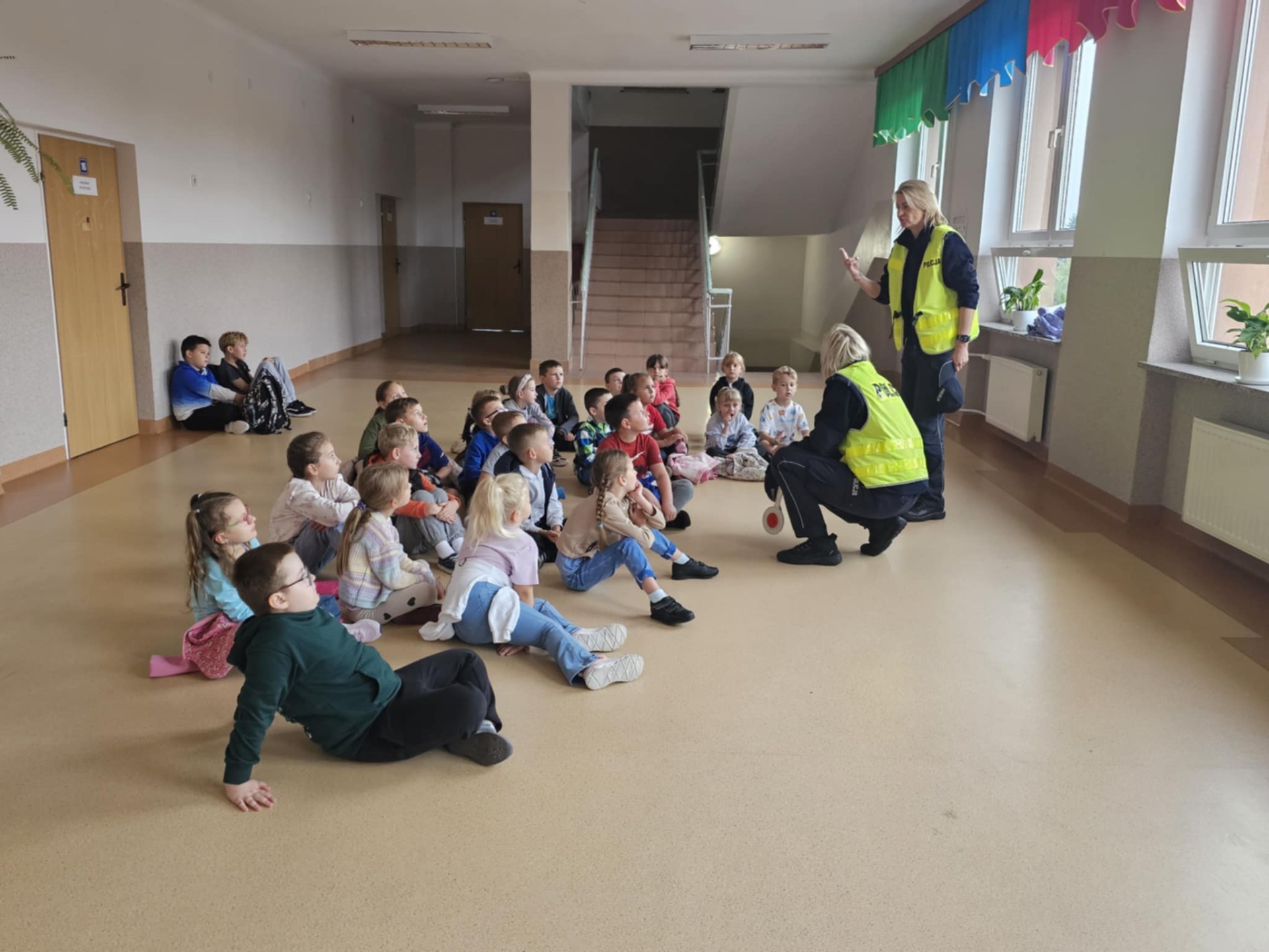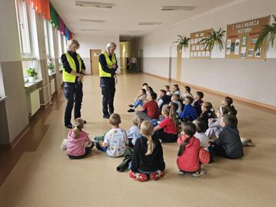 Podczas zajęć funkcjonariuszki policji przypomniały dzieciom najważniejsze zasady poruszania się po drogach, m.in. prawidłowego przechodzenia przez jezdnię, stosowania się do sygnalizacji świetlnej oraz konieczności używania elementów odblaskowych. Omówiono także zasady bezpiecznego poruszania się rowerem i hulajnogą, a także znaczenie noszenia kasków ochronnych. Uczniowie dowiedzieli się równie, jak bezpiecznie zachowywać się podczas podróży autobusem szkolnym oraz w drodze pieszej.