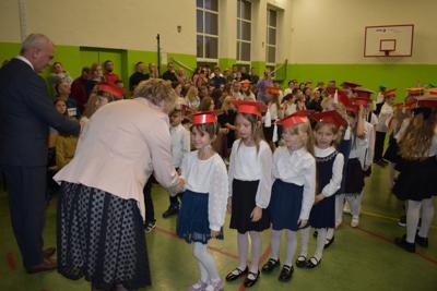 Dnia 29 października w naszej szkole odbyło się uroczyste pasowanie na ucznia. Pierwszoklasiści w odświętnych strojach zaprezentowali program artystyczny, w którym pokazali, że są już gotowi, aby stać się pełnoprawnymi członkami szkolnej społeczności. Dzieci złożyły ślubowanie, obiecując być pilnymi uczniami oraz dobrymi kolegami. Na zakończenie uroczystości każdy dostał drobny upominek. To był wyjątkowy dzień, przepełniony emocjami - na pewno pozostanie na długo w pamięci pierwszoklasistów i ich rodziców.