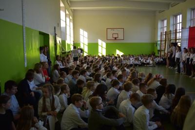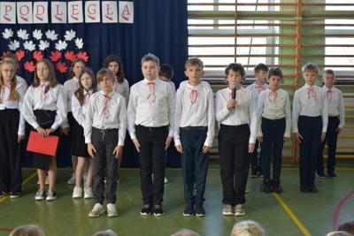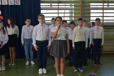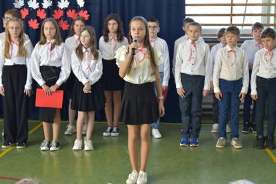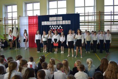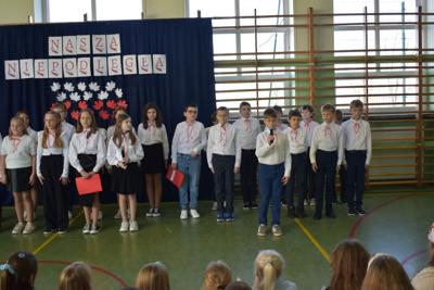 Na zakończenie apelu, o symbolicznej godzinie 11.11, cała społeczność szkolna wspólnie odśpiewała „Mazurka Dąbrowskiego” włączając się do ogólnopolskiej akcji MEN „Szkoła do Hymnu”.
