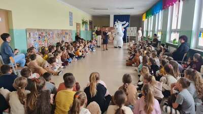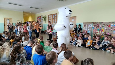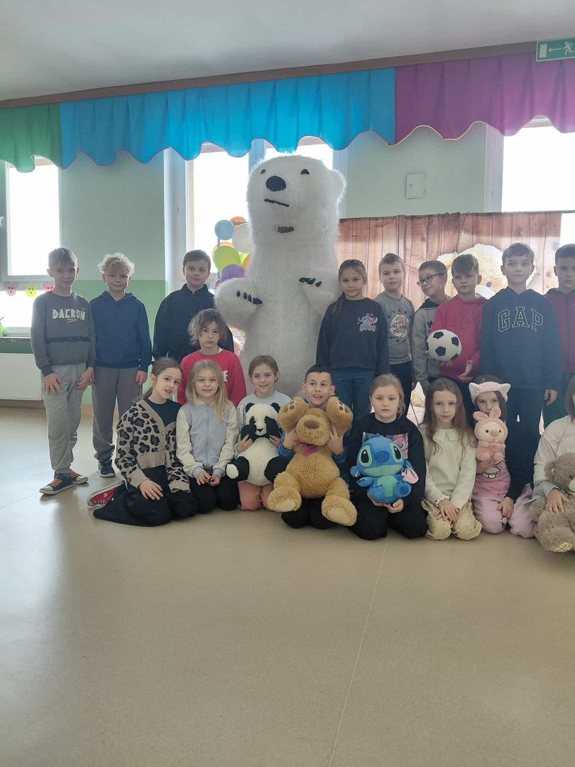 Największą niespodzianką dnia była jednak wizyta ,, prawdziwego misia", który pojawił się na holu, by przywitać dzieci, pozować do zdjęć i wspólnie świętować ten wyjątkowy dzień. Radości i zachwytu nie było końca.