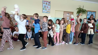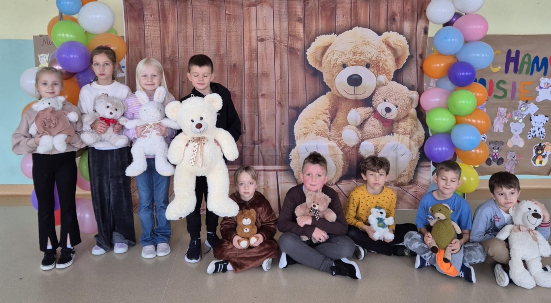 Dzień Pluszowego Misia, który obchodziliśmy 25 listopada rozpoczął się uroczystym spotkaniem na szkolnym holu, wypełnionym kolorowymi dekoracjami. Każdy przyniósł swojego ulubionego misia, więc już od pierwszych chwil atmosfera byla pełna ciepła, uśmiechu i dziecięcej beztroski. Uczniowie wykonali barwne, pomysłowe plakaty przedstawiające misie w różnych odsłonach.