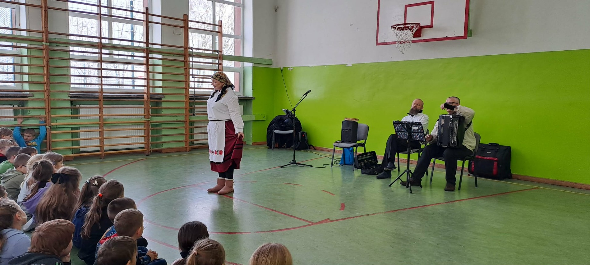 · Audycjach muzycznych pt. „Nasze Podlasie – pieśni i obrzędowość”, podczas których dzieci zapoznawały się z folklorem, zwyczajami i obrzędami regionu. Uczestnicy mieli możliwość wspólnego śpiewania z muzykami oraz aktywnego udziału w zajęciach poprzez zabawy z wykorzystaniem rekwizytów, takich jak chusty, zapaski czy tamburyna. Spotkania te pozwoliły dzieciom przenieść się w świat dawnych pieśni ludowych, opowiadających o pracy, odpoczynku, tęsknocie i zabawie, związanych z obrzędowością kolejnych pór roku oraz kulturą wsi Podlasia XIX i XX wieku.